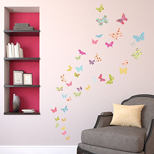 -. Title : Decowall, DW-1408, Colorful Patterned Butterflies peel & stick wall decals stickers