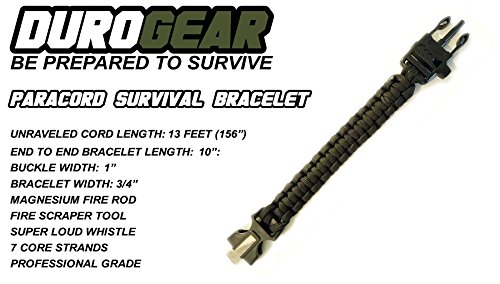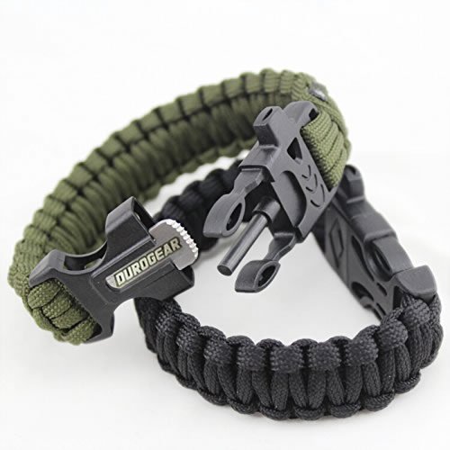 Duro Gear Survival Paracord Bracelet with Fire Starter, Magnesium Rod, Scraper and Whistle - Tactical Black and Army Olive Drab Green - 2 Pack