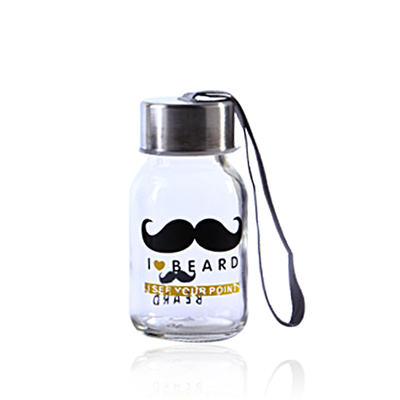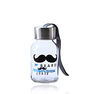 | Product Description | Korean glass, mini design, the cup can do both, and can carry a cup of multi-purpose. Smooth surface, transparent glossy, no smell, easy to clean, non-organic chemicals, non-toxic, environmental health more notable features. Fashionable cup cute little beard who printed pattern, to create a mug adds beauty. When the glass containing various liquids, do not worry about chemical substances will be drinking into the stomach for a long time do not leave drinks containing hard to wash the dirt. When embedded in a stylish lid sealing gasket, make sure the content liquid, on its side or upside down do not worry Salou, the top lid also has a rope handle, easy to carry out. |