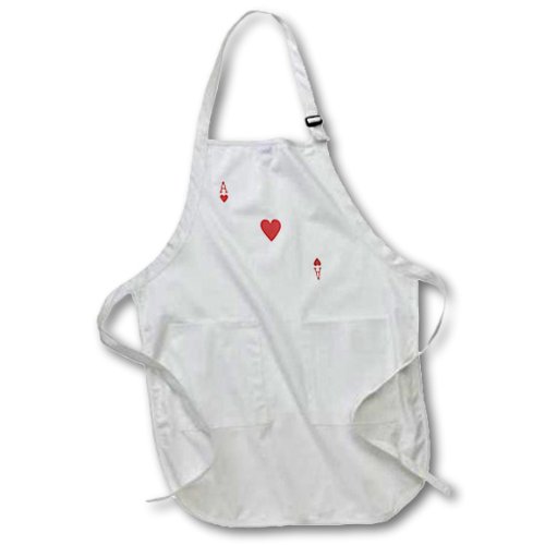 3dRose apr_76551_4 Ace of Hearts Playing Card Red Heart Suit Game Players Poker Bridge Full Length Apron with Pockets, 22 by 30", Black