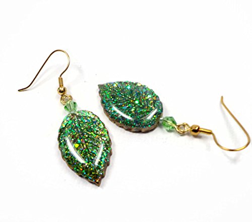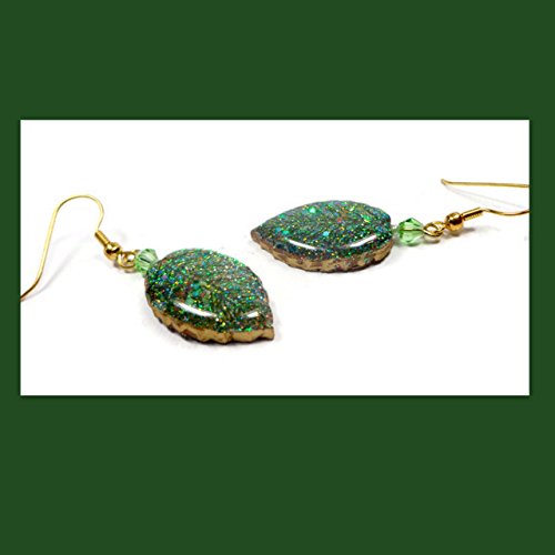 -. Title : Emerald Green Leaf Dangle Earrings