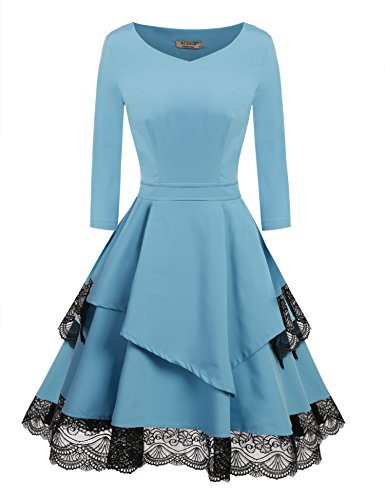 Title : ACEVOG Women's Vintage Floral Lace 3/4 Sleeve Heart Neck Cocktail Formal Swing Dress (Blue XL)