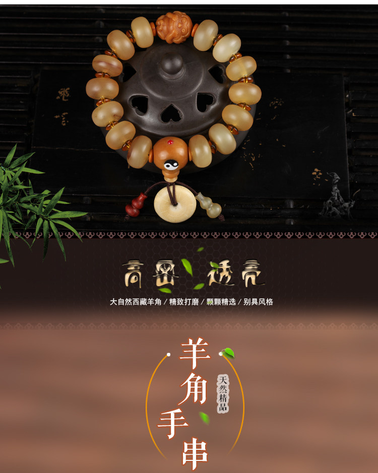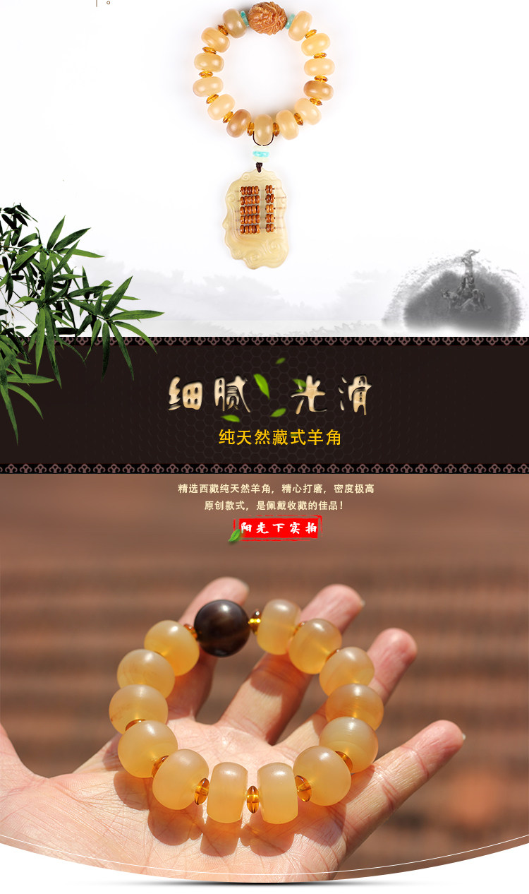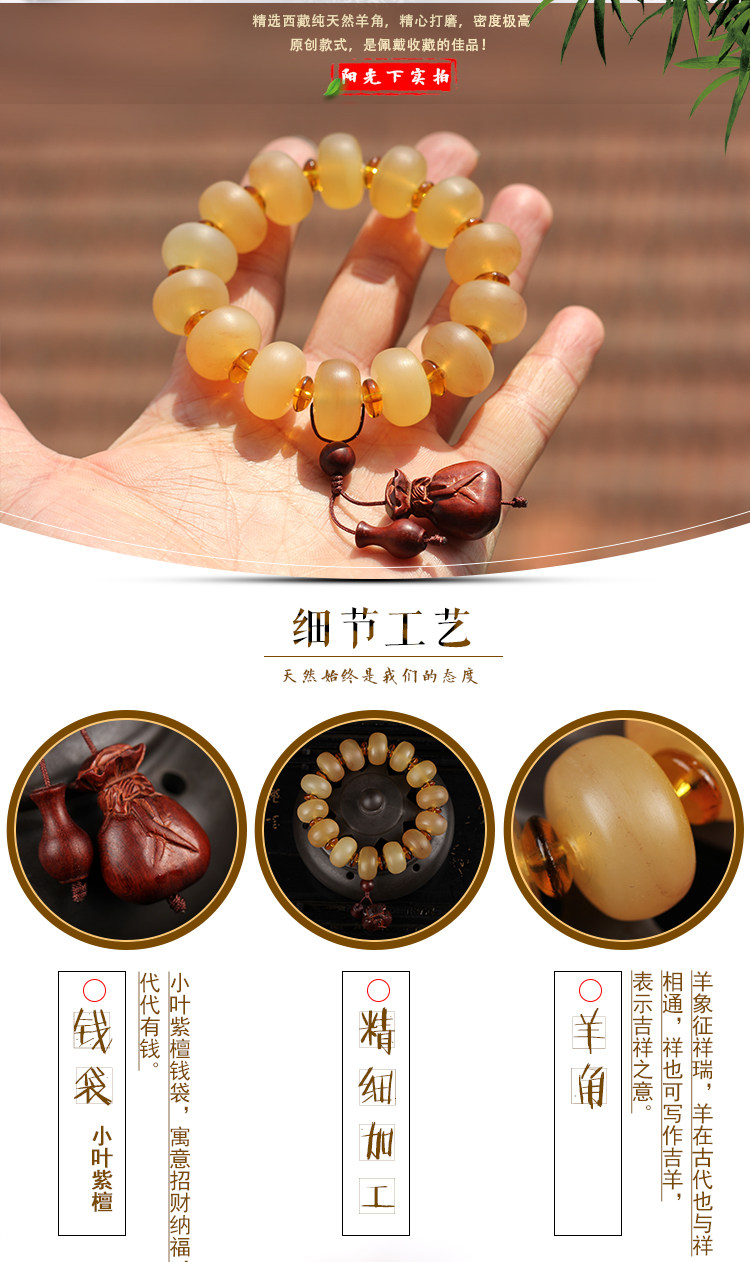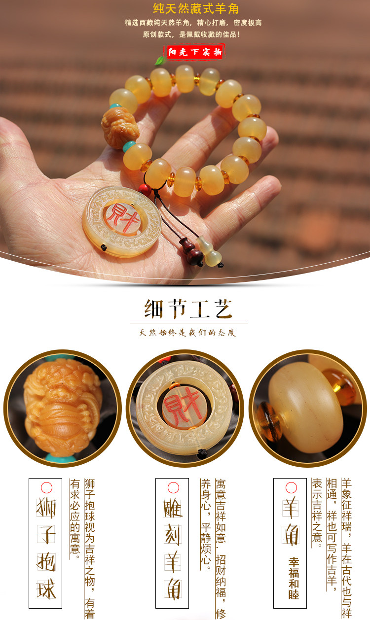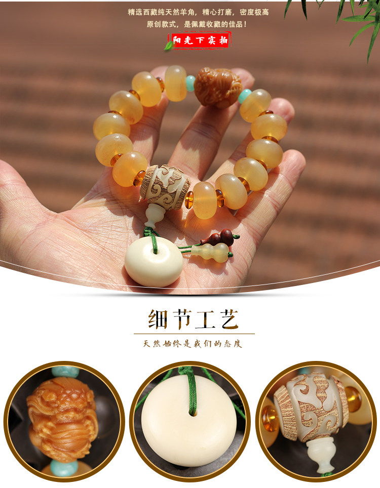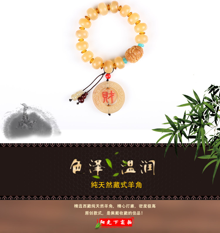 正宗纯天然西藏羊角佛珠手串招财转运精美配饰手链男女民族风