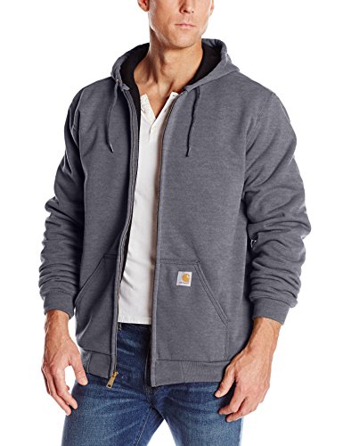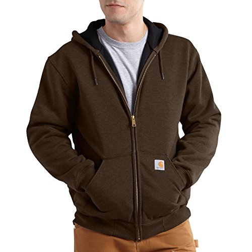 Studio : Carhartt Sportswear - Mens Publisher : Carhartt Sportswear - Mens Binding : Apparel Product Description Our thermal-lined, hooded sweatshirt really delivers when temperatures drop. It teams 50% cotton/50% polyester fleece with a 100% polyester thermal lining for warmth. Even the three-piece hook is thermal lined. Best, it features a Rain Defender durable water-repellent finish. Up front, there's a full-length brass zipper and two hand-warmer pockets. For added comfort, the cuffs and waistband are made of a stretchable, spandex-reinforced rib-knit fabric. There an inside pocket with zipper closure and a locker loop for easy hanging. Full-length brass front zipper. Thermal lined Rain Defender durable water-repellent finish Stretchable cuffs and waistband Two hand-warmer pockets 0