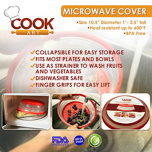 -. Color : Red/Clear -. EAN : 0656727778304 -. Feature : SAVE MONEY by reducing waste of paper towels and wraps to cover mixing bowls to microwave food / Its collapsible feature allows you to EASILY STORE and SAVE SPACE in your drawers / Keep your microwave CLEAN AND MESS-FREE. Vented for pressure release while keeping splatter inside / Use as strainer to WASH FRUITS AND VEGETABLES, fast and easy. / Get YOURS TODAY! Just click the "Add to Cart" button on the right -. Label : CookArt -. Manufacturer : CookArt -. PackageQuantity : 1 -. ProductGroup : Kitchen -. ProductTypeName : KITCHEN -. Publisher : CookArt -. Studio : CookArt -. Title : CookArt Microwave Plate Cover Food Strainer Collapsible Colander Ultimate Kitchen Tool Easy to Clean Use and Store -. UPC : 656727778304