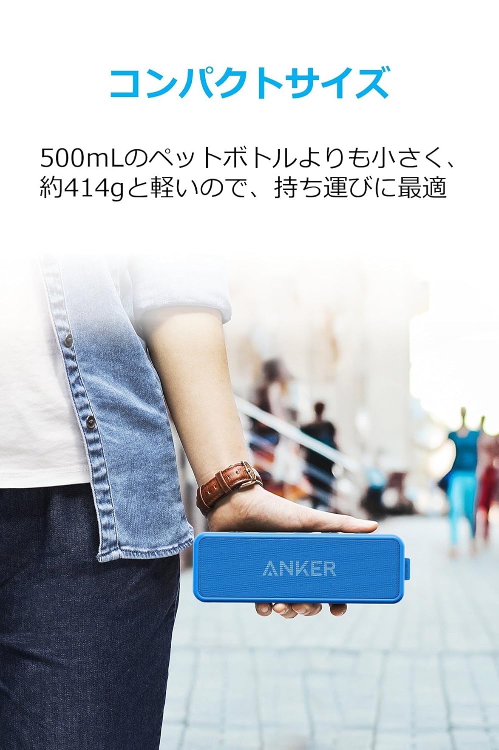 どこでもお気に入りの音楽を:第1世代と変わらない持ち運びやすいデザインに加え、新たにIPX5防水対応になりました。どのような環境でもお気に入りの音楽をお楽しみいただけます。