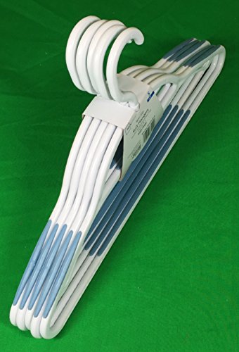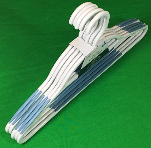-. Feature : Size: 16" x 8" / 5 plastic hangers per set / Non-Slip surfaces on top arms and bottom horizontal / Accessory holder bar and clips