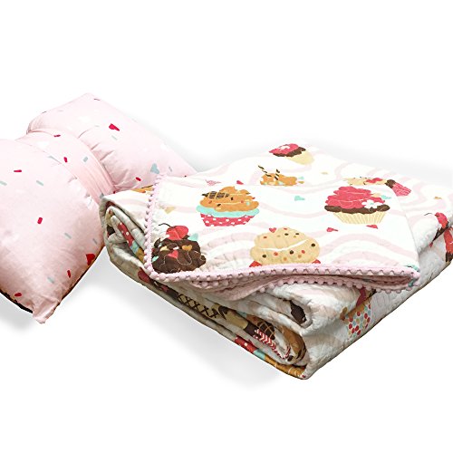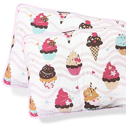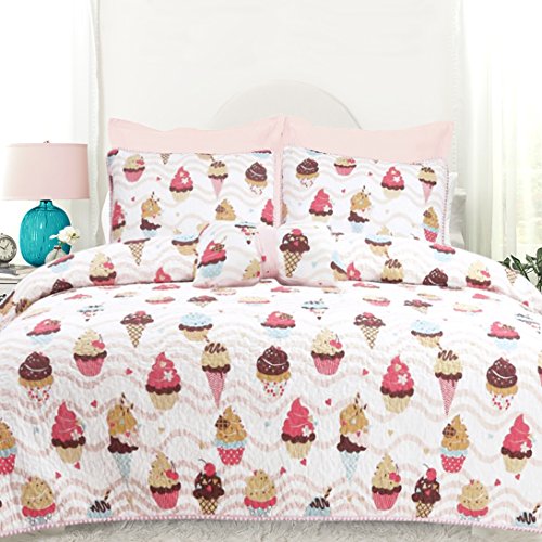 Make your bed looks so sweet with the pom pom trim and printed patterns of cupcakes and ice cream cones.