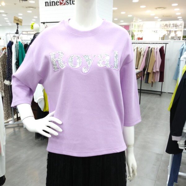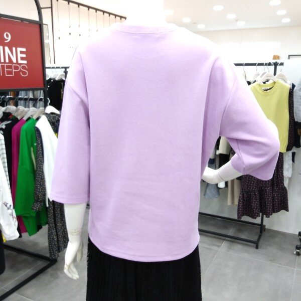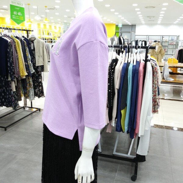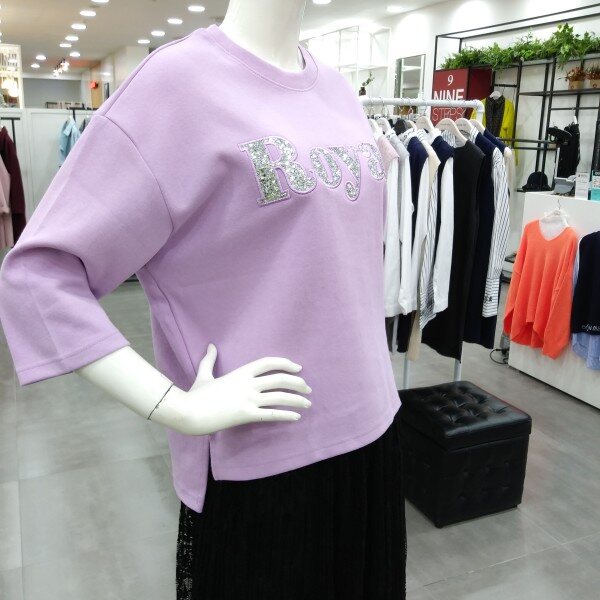 7부 소매단의 블링자수 로고가 들어간 박스스타일의 티셔츠입니다