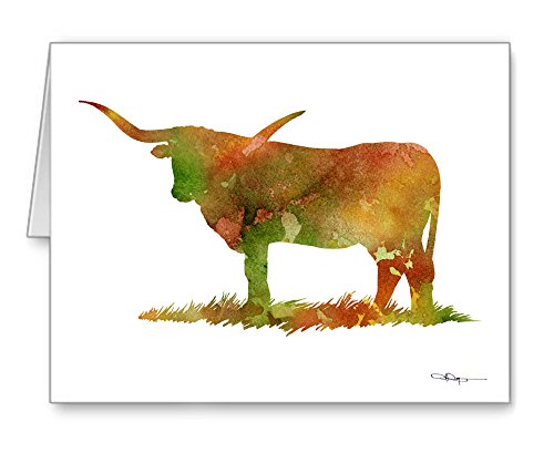 -. Feature : "Longhorn Cow" artwork by watercolor artist DJ Rogers. / Note card size is 4.25 x 5.5 inches / Matching white envelopes included. / Note cards are blank inside for your personal message. / Suitable for framing.