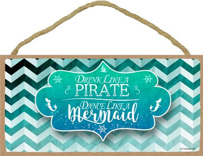 (13517) Drink like a pirate, Dance like a mermaid 5" x 10" Wood Plaque Sign