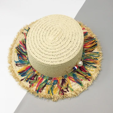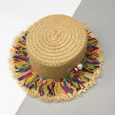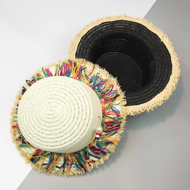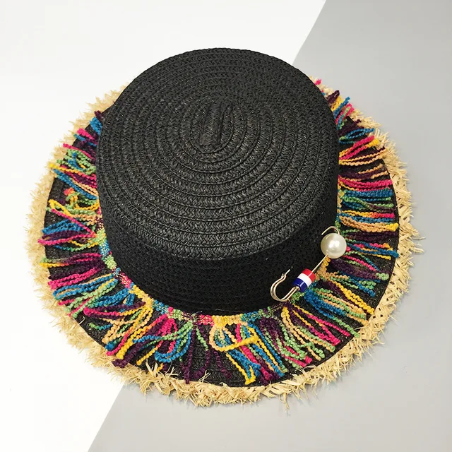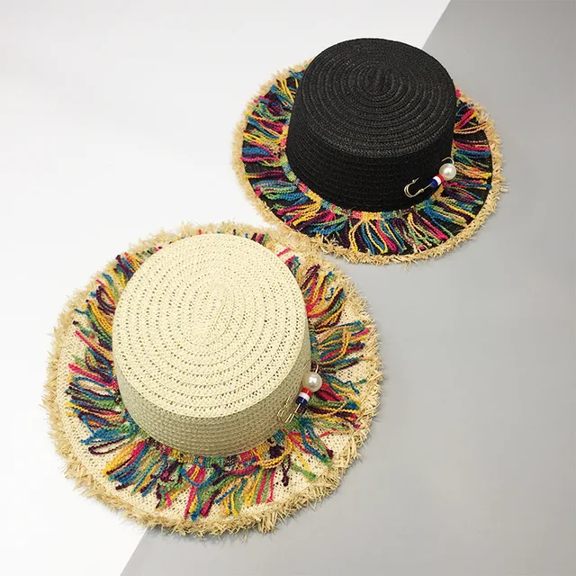 | [해외]HT1119 다채로운 술 여름 밀짚 모자 챙이 넓은 플랫 최고 해변 태양 모자 솜브레로 Mujer 남성 배타 모자 Chapeu Masculino |