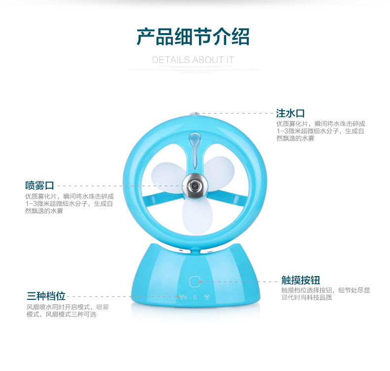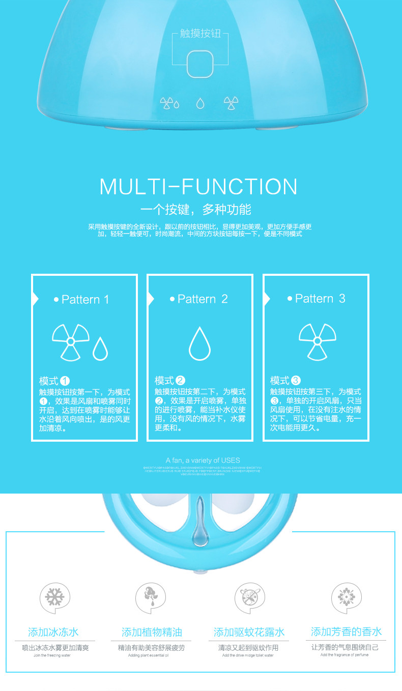 迷你空调喷雾制冷小型风扇办公学生桌面喷水加湿器USB可充电风扇