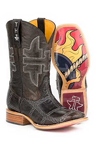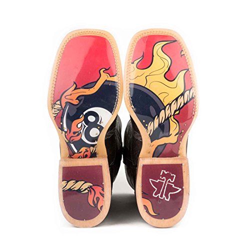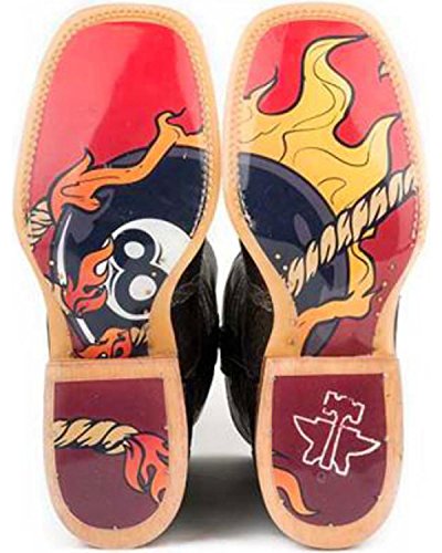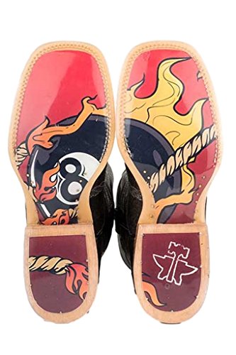 Studio : Tin Haul Shoes Publisher : Tin Haul Shoes Binding : Apparel Product Description His smokin' style will show in these boots from Tin Haul. Made from full-grain leather, these striking cowboy boots feature an eye-grabbing, distressed vamp with rope pattern, and a decoratively stitched upper shaft. With a square toe, these handsome boots also have a colorful outsole featuring a bombastic design of a burning 8-Ball, leather lining, and an 11" shaft. 0