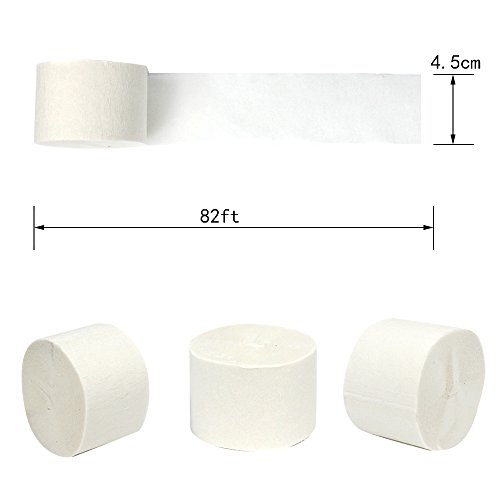 -. Feature : Package contains 8 rolls of 82ft White Crepe Paper Streamers / Color: white / Size: width - 4.5cm, length - 25M / Each roll of paper is neatly bundled, easy to unlock and easy to hang. With commonly used white color; Suitable for any DIY handicrafts, such as decorating your bedroom and so on / This set of elegant paper streamers is ideal for a variety of themed parties, birthday parties, summer parties and baby showers, Christmas parties and festive queues, etc