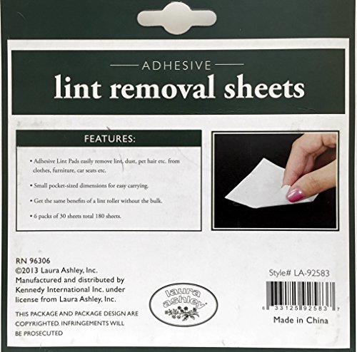 Laura Ashley Adhesive Lint Removal Sheets, Grey and White Damask Delancey, One Set of 6 Packets, 180 Sheets Each