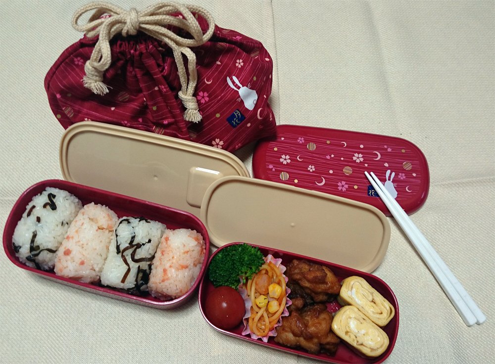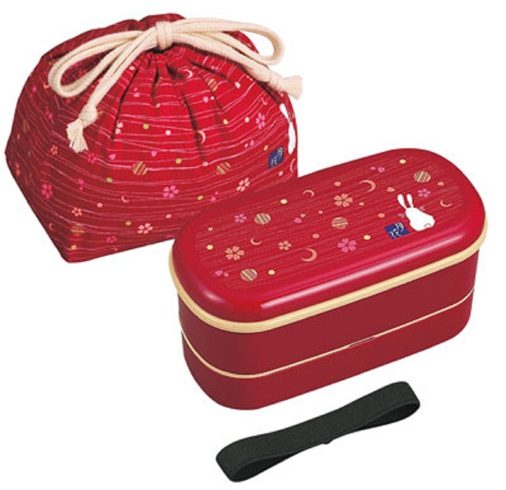 OSK Japanese Traditional Rabbit Moon Bento Box Set Includes 620ml 2-Tier Bento Box Chopsticks Bento Bag Red