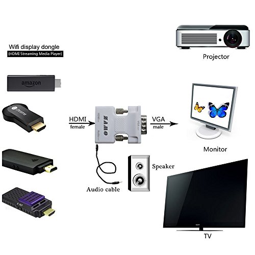 ZAMO Active HDMI Female to VGA Male Adapter W 3.5 mm Stereo Cable Supports Audio Convert your Monitor and Projector with VGA Input to HDMI Input, Specially for Connect Google Chromecast, White