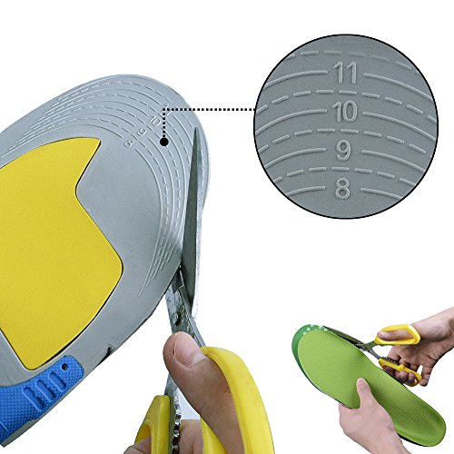 Trim to fit. Easy-to-follow Trimming line. Measure twice, please. Tips: feet shape comes first when trimming these insoles, the cutting lines second. Have a nice day!