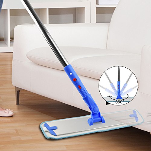 360 SWIVEL HEAD: Our 360 swivel head mop system design is easy to use and highly effective. Use our unique sliding aluminum base plate design to quickly reach deeper under furniture and glide effortlessly around objects. Simply slide the handle over to one side to engage this feature and let the mop do the work for you.
