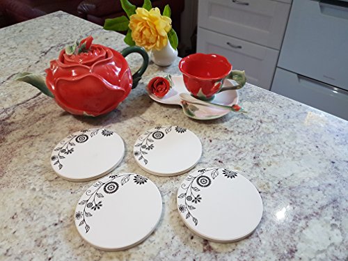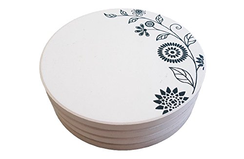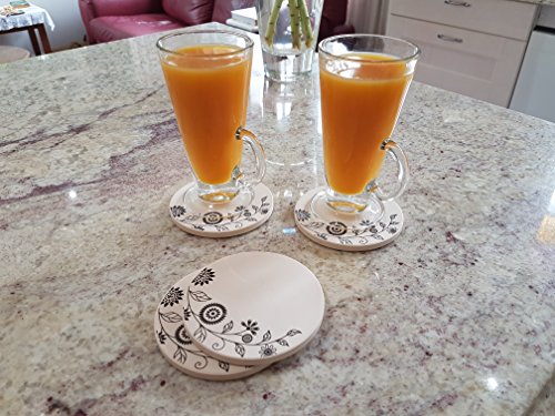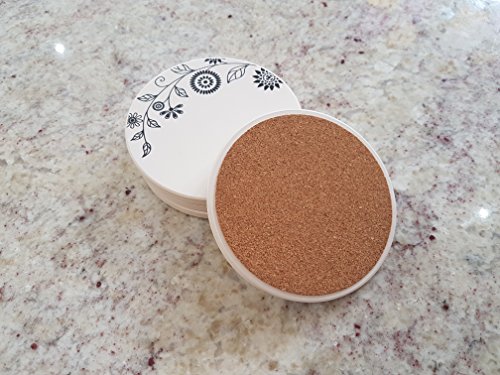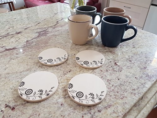 Coasters for Drinks, Set of 4 Absorbent Stone Coasters With Cork Backing, Designer Floral Pattern, By Home Excellence.