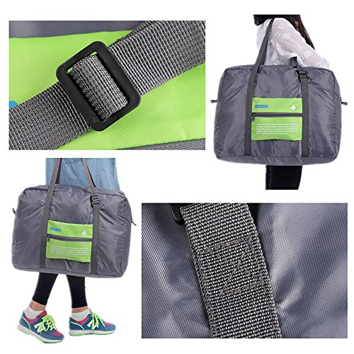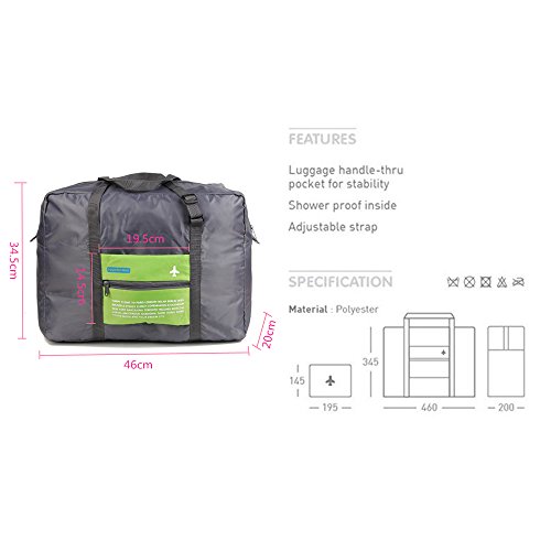 -. Feature : Material:Polyester,Zipper closure,reinforced handles and adjustable strap. High workmanship ensure high quality, light weight but durability / Size: 18'' x 8'' x 13.6''(LxWxH) ;Folded size: 7.68''x 5.7''You can fold it up into a packet as the picture show / A RELIABLE TRAVEL ESSENTIAL; Unfold at the airport to avoid excess baggage charges, to carry your gifts and souvenirs, or to transfer your things from your damaged suitcase. / INTENDED USE: Gym, Sports, Travel, Lage, Carry-on Bag, Hiking and Camping. / It is waterproof,so you do not need to worry about carrying it in the rainy day.