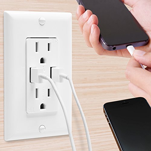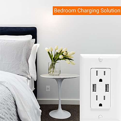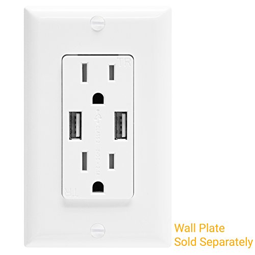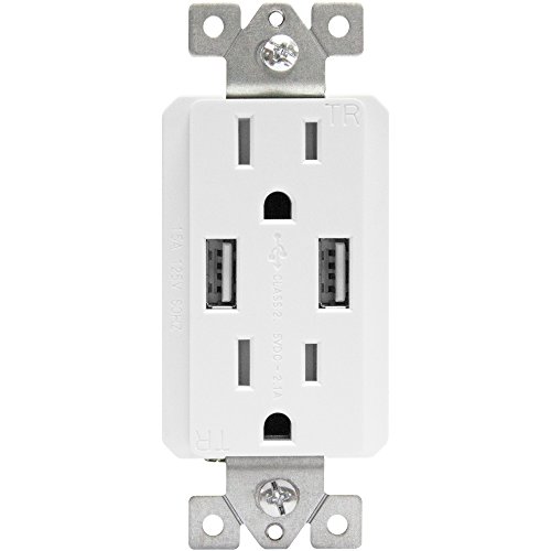 Top Greener TU2152A-W Dual USB Outlet/Outlet with USB ports, Dual USB Charger Outlet, USB Power Outlet, 2.1A USB Outlet with 15A Tamper Resistant Duplex Receptacle, White