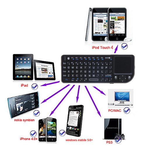 Wireless keyboard + Touchpad + Mouse, small and exquisite for Windows and Mac OS computers, home theater PC users, IPTV, Internet TV, Google TV, Android TV box, PS3 and Xbox 360.