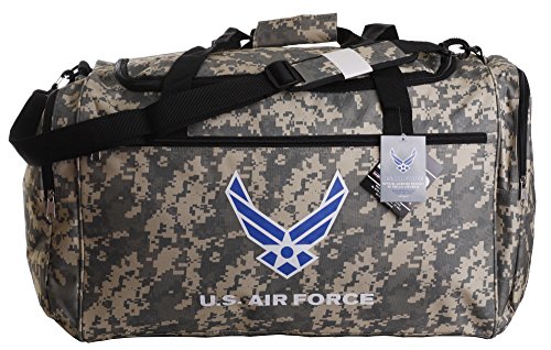 -. Binding : Misc. -. Brand : WTD -. Color : Camo -. Department : mens -. EAN : 0722530089316 -. Feature : An Authentic Officially Licensed Military Duffle Bag with U.S. Army, Air Force, Navy or Marines Symbol and Letters on Front / Sturdy Fabric 21" x 12" x 15" Tough Contruction / Padded Adjustable, Removable Strap Handle / Main Top Zip Closure with 2 Side Zip Pockets / One Large Zip Pocket Front for Quick-access-IDs and Documents -. Model : 13029 -. MPN : LYSB016VBPOBQ-OFFSUPPLIES -. PackageQuantity : 1 -. PartNumber : LYSB016VBPOBQ-OFFSUPPLIES -. ProductGroup : Sports -. ProductTypeName : SPORTING_GOODS -. Size : One Size -. Title : U.S. Air Force Official Licensed Camo Duffle Gym Lage Bag -. UPC : 722530089316