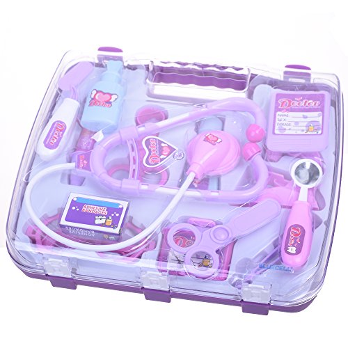-. Feature : Package included: Mirror, reflex hammer, thermometer, syringe, kidney basin, tweezers, scissors, stethoscope, carry case / Attention: for Ages 3+ / Great gift for Birthdays, Christmas, special events etc / nteractive role-play games / Material: high quality plastic