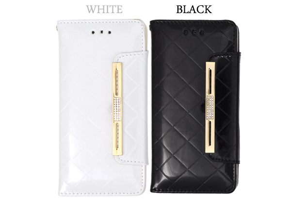 エナメルの光沢とラインストーンがエレガント感を演出してくれるケースです。