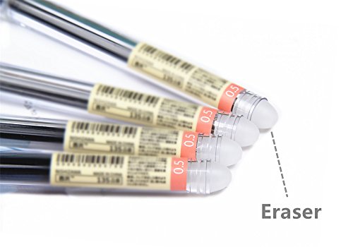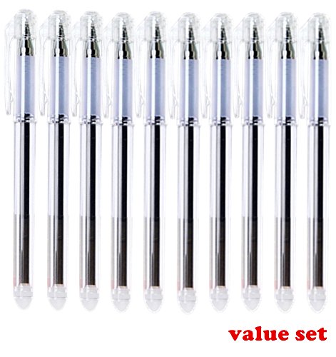 -. Feature : Erase and rewrite repeatedly - Sensitive gel ink formula disappears with erasing friction without damaging notes and documents. / Stylish design - Transparent design of the whole pen give you a good mood. / Smooth writing erasable pens- Writes smoothly just like a regular gel ink pen but allows you to erase like a pencil at any time. / Pack -10 Packs of extra fine point (0.5mm) gel pens with black ink. / Note - Not recommended for use on legal or official documents.The Ink will disappears above 140 Fahrenheit and appears below Fahrenheit 60.8.