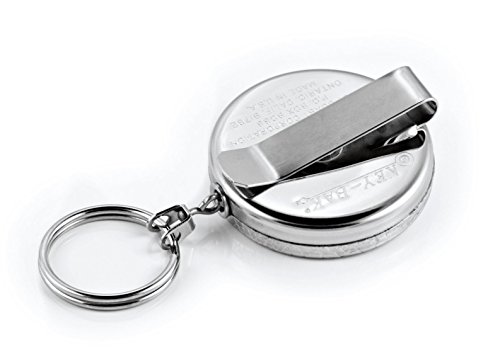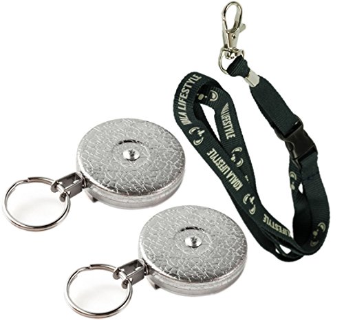 Key-Bak Original Series #5 Heavy Duty Retractable Key Reel with 24 Inch Kevlar Stainless Steel Swivel Chain and Belt Clip (2x) Bundle with Koala Lanyard - Chrome
