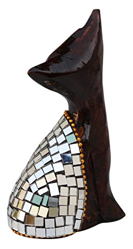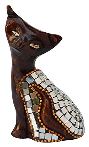 Quirky Gifts - Attitude Meow Statue - Wooden Cat Statue UNIQUE MIRROR WORK Hand-Carved Beaded Figurine