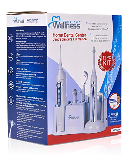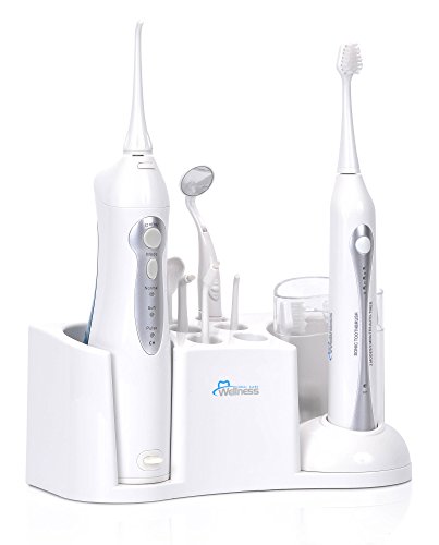 Wellness Oral Care Home Dental Center with Rechargeable Ultra Sonic Toothbrush, Irrigator Water Flosser, 8 Attachments, Lighted Mirror and...