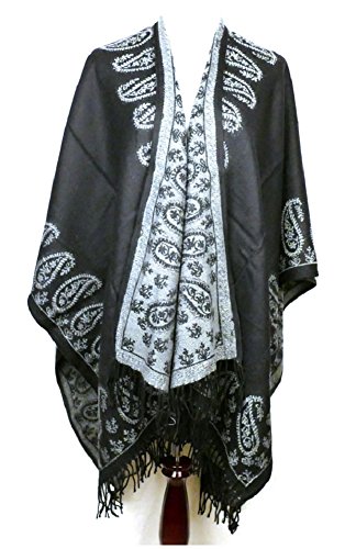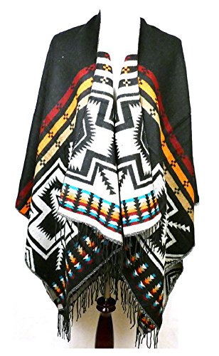 (AO)/Accessories/Scarves/DIRECT FROM USA/AO Fringe Aztec Boho Hippy Western Winter Poncho Shawl Wrap Black