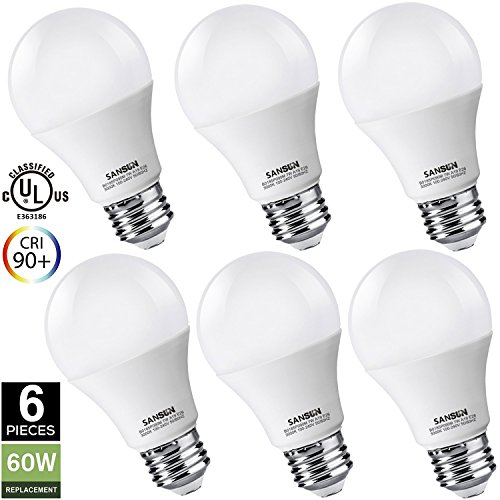 A19 LED Light Bulbs 60 Watt Equivalent, SANSUN 3000K (Soft White), E26 Socket, UL-Listed LED Globe Bulbs - (Pack of 6)