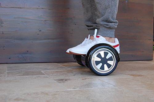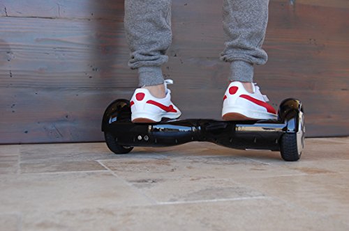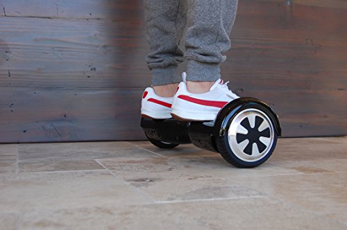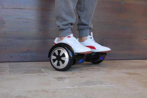 The 6.5" R6 Hoverboard is UL 2272 approved. This board is the original style body with a newly upgraded system. To ensure the highest level of quality, this board was designed with all the components and features required for UL 2272 and each board comes with an authentic UL 2272 sticker on bottom. This board is ideal for everyday use or beginners. The non-slip footpads and newly updated balancing system make this board one of the smoothest and best balancing boards on the market. The wheels are 6.5" and made of solid natural rubber that is suitable for indoor and outdoor use on smooth flat surfaces. High powered LED lights on the board will change colors as you ride. Lights on the board will turn from blue to green to red, depending on your direction and speed of travel. The UL approved rapid charger will fully charge a dead battery in approximately 2.5 hours but will provide you with an 80% charge in roughly 30 minutes.Feature