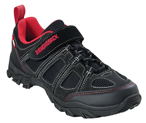 -. Binding : Sports -. Department : mens -. Feature : Made from lightweight synthetic leather and breathable mesh. / Compatible with three-bolt Look and SPD-SL cleats, and are vented throughout. / Has a three-strap Velcro closure system and a composite sole protected by TPU walk pads. / Steps it up by replacing the top strap with a ratcheting microlock buckle. -. Model : 87-32-278-P -. ProductGroup : Sports -. ProductTypeName : OUTDOOR_RECREATION_PRODUCT -. Title : Diamondback Men's Trace Clipless Pedal Compatible Cycling Shoe