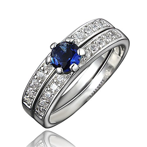 -. Title : Blue Sapphire Couple Mother Daughter Ring Crystal CZ Wedding Band Promise Ring Set