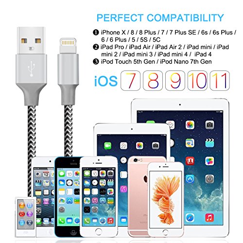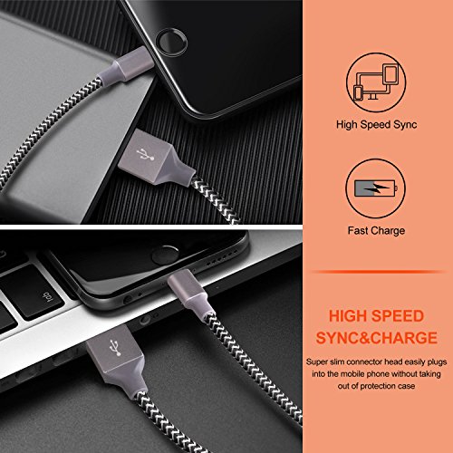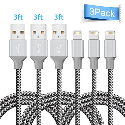 (Quntis)/GPS Navigation/GPS System Accessories/DIRECT FROM USA/iPhone Charger, Quntis Lightning Cable 3Pack 3FT Nylon Braided Fast Charging Cord Charge and Sy...