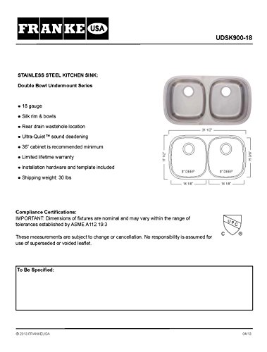 Franke UDSK900-18 Double Bowl Stainless Steel 31.5x17.5in. Undermount Sink