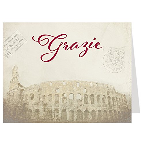 Bridal Shower, Thank You Cards, Italy, Red, Italian Theme, Wedding Shower, Vintage, Passport, Rome, Coliseum, Honeymoon, Set of 50 Printed Folding Notes with Envelopes, Thats Amore