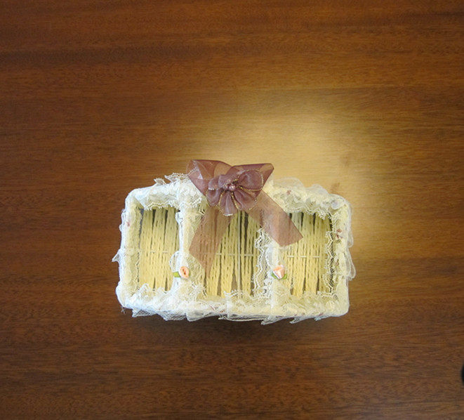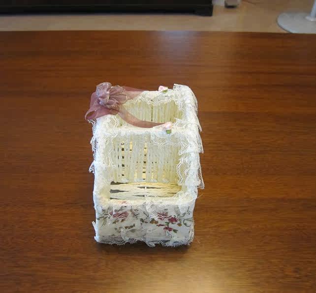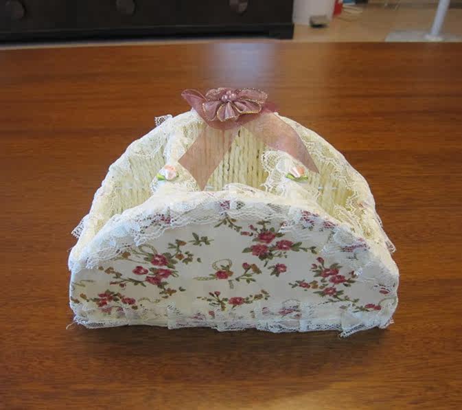 Wire bracket a braided rope, is surrounded by warm rose fabric, lace edge withromantic fantasy, can be used for placing the remote control, mobile phone keys,and other small items, stationery.