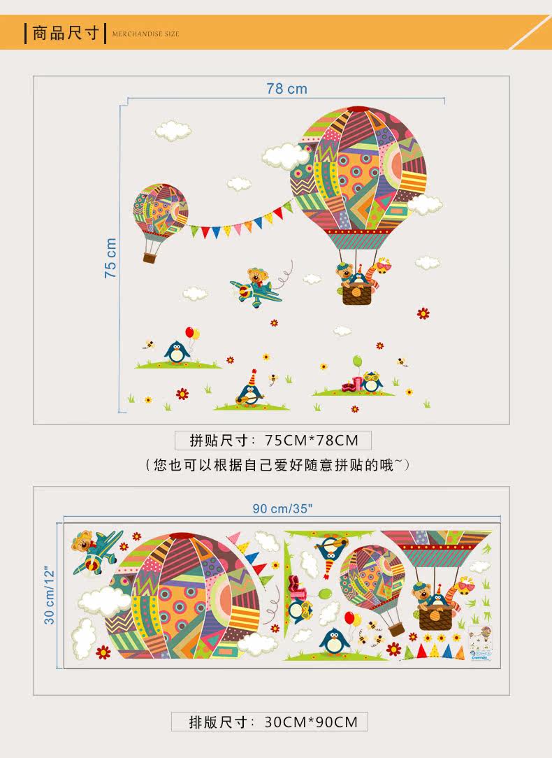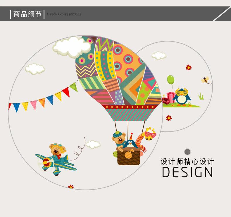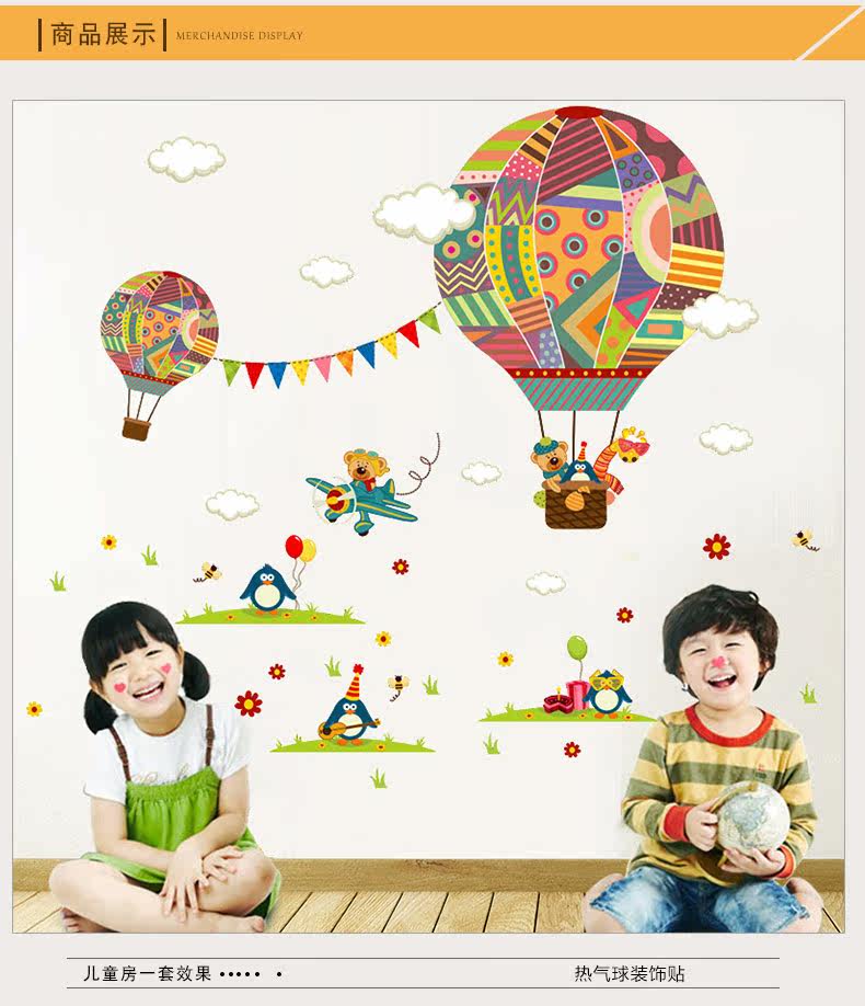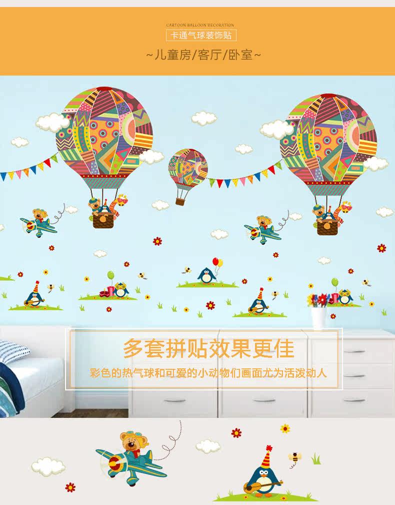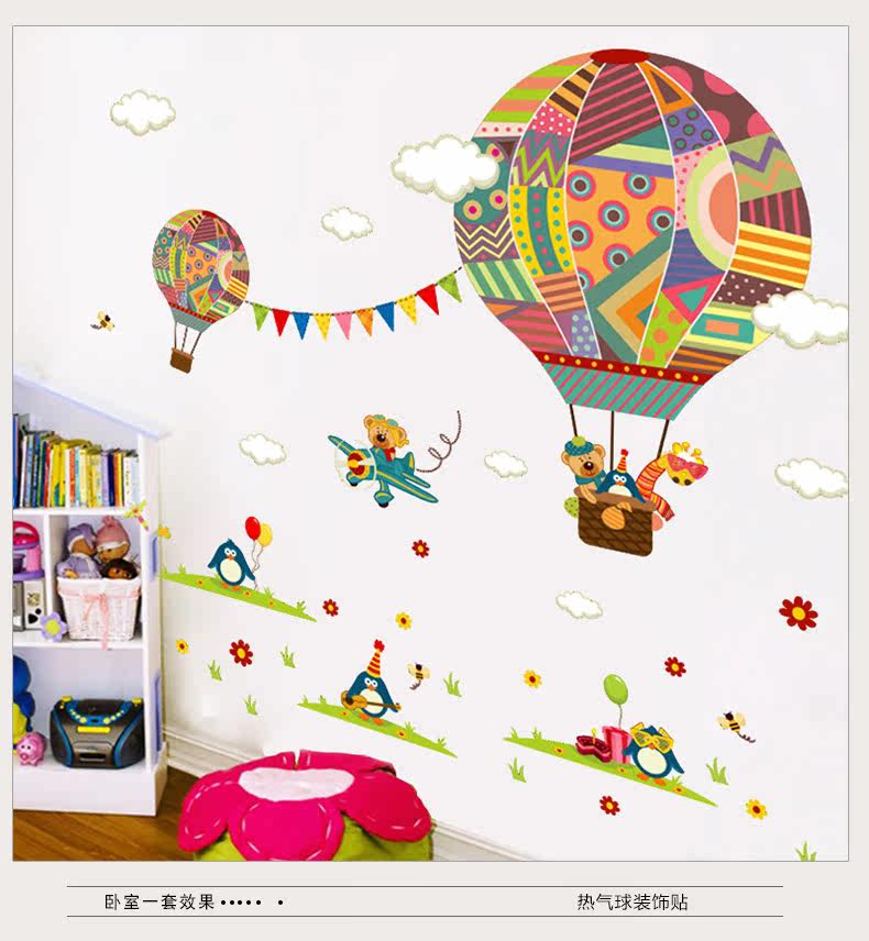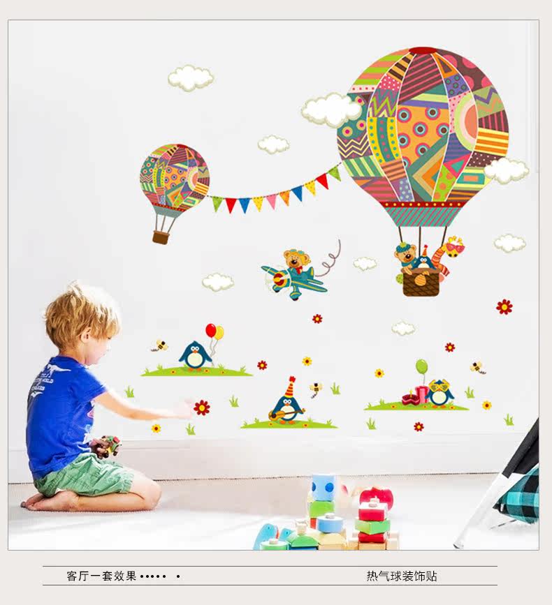 幼儿园墙面装饰热气球贴画卧室男女孩儿童房卡通动物可移除墙贴纸