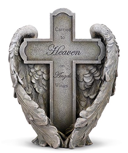 Angel Wings Heaven Cross Memorial 11" Resin Stone Garden Statue Figurine
