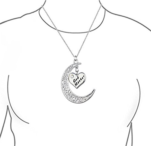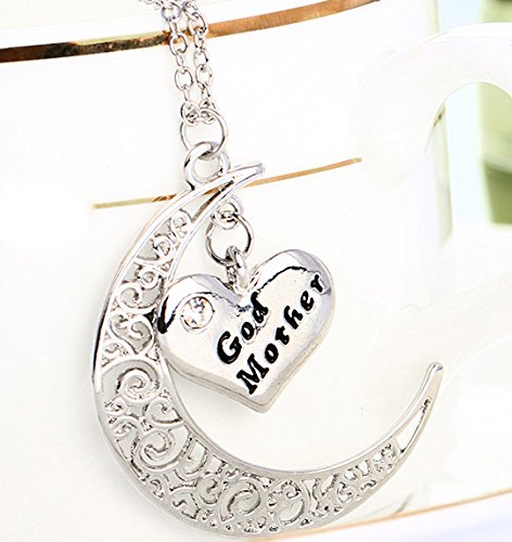 -. Title : Girls Jewelry Letter God Mother Hollow Moon Heart Pendant White Gold Plated Necklace Engraved Gift