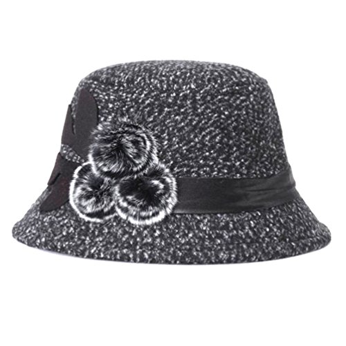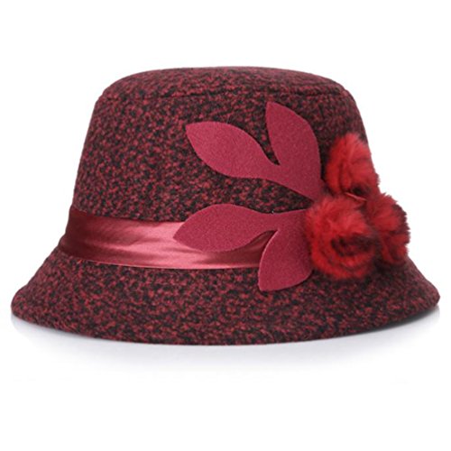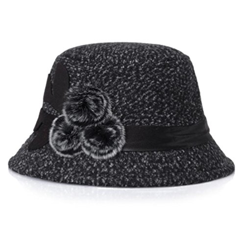 Lemontrip Womens Vintage Wool Felt Cloche Bucket Bowler Hat Winter Crushable