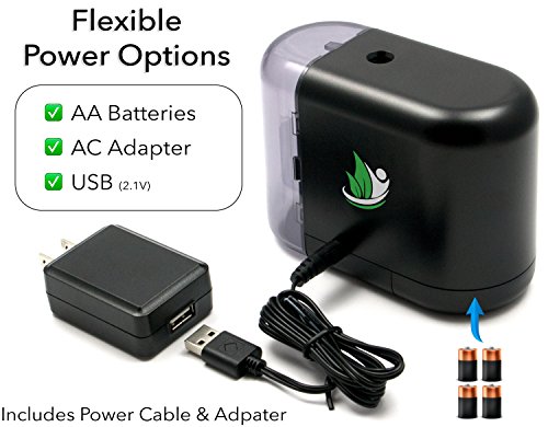- ✅ PRECISION SHARPENING, FLEXIBLE POWER OPTIONS: Conveniently Powered by AA Batteries, Included AC Power Adapter, or even a USB Port (2.1V). The built-in Variable Sharpness Selector allows for quick and easy artistic sharpening options. Ideal for No. 2 pencils, colored pencils, daily writing, drawing, and shading/coloring.