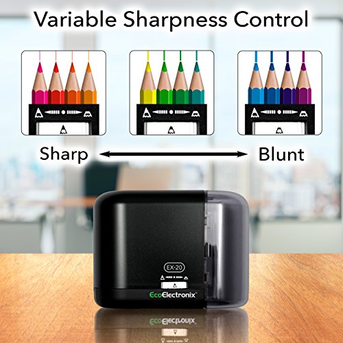 - ✅ AUTO-SHARP LIGHT INDICATOR: Built-in LED Light indicates when your pencil is completely sharpened. Sharpening motor automatically shuts off when the perfect sharpness is reached. The EX-20 can tackle colored and soft lead pencils with ease. Looking for a colored pencil sharpener? This is it! Looking for a solid standby to sharpen No. 2 pencils? It does that too!